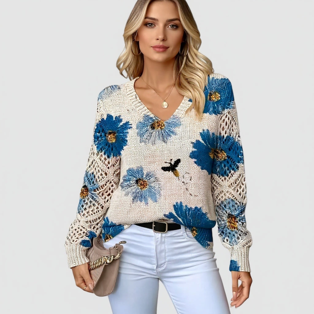 Celeste™ – Elegantiška megztinė su gėlių raštu